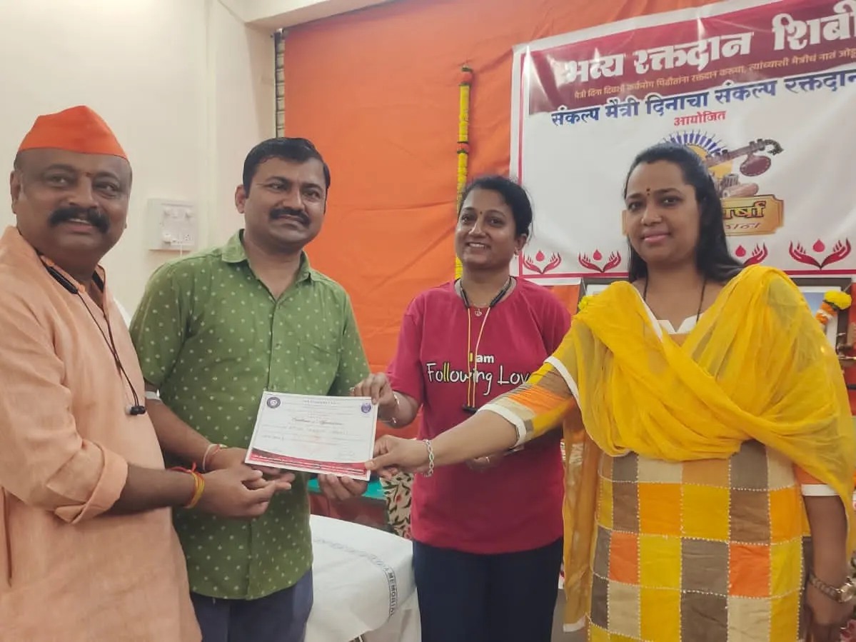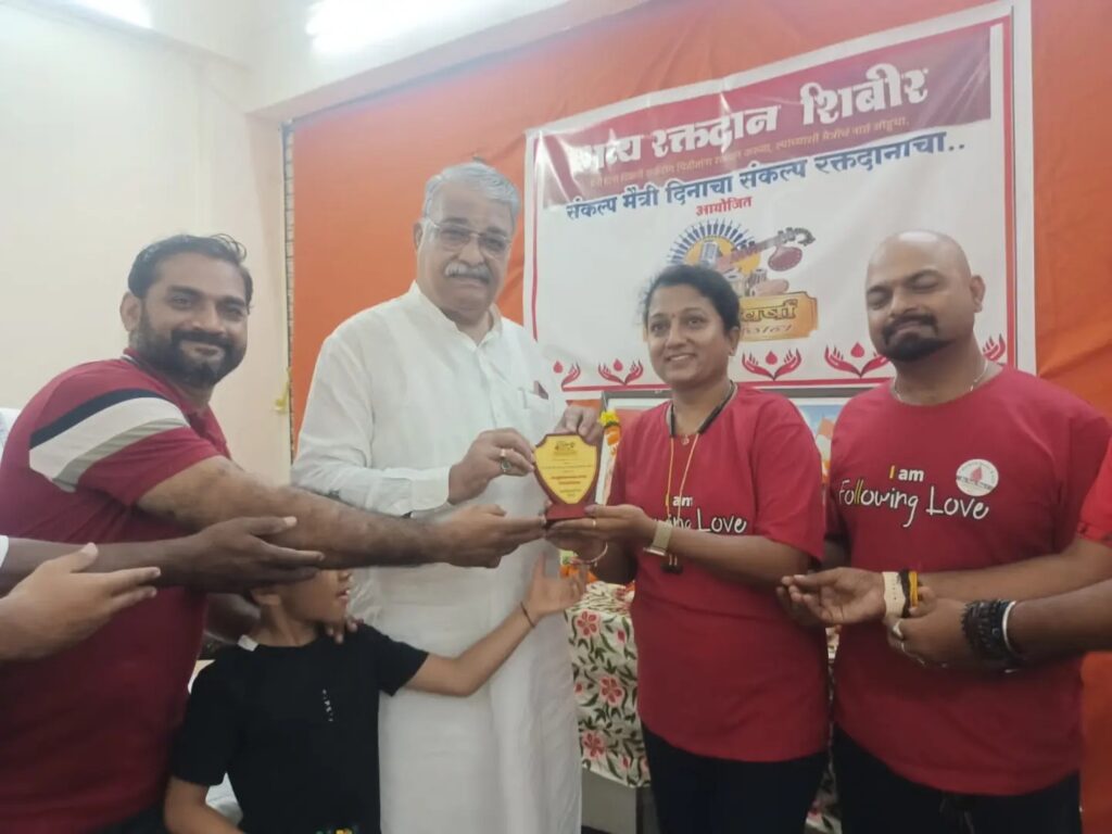 संकल्प मैत्री दिनाचा…संकल्प रक्तदानाचा…एक हात मदतीचा… या संकल्पनेतुन अशोक गावडे फाऊंडेशन व संगीत वर्षा कला प्रतिष्ठान यांच्या आयोजनातून टाटा हॉस्पिटल खारघर रक्तपेढी यांच्या माध्यमातून कॅन्सर रुग्णांनसाठी आज रविवार दिनांक 6/8/2023 रोजी सकाळी 9 ते 3 वाजेपर्यंत शिवसेना मध्यवर्ती कार्यालय नेरूळ से 28 येथे रक्तदान शिबिराचे आयोजन करण्यात आले होते.