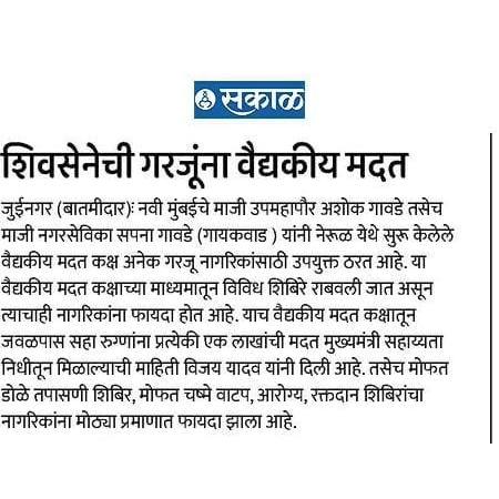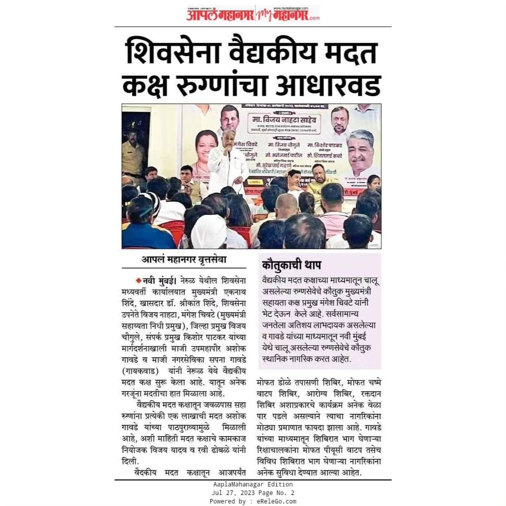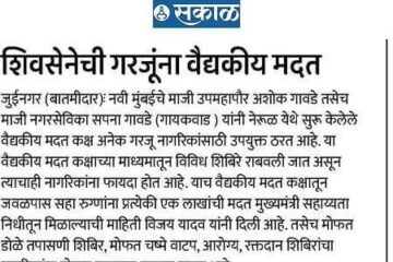 Read Moreशिवसेना नवी मुंबई वैद्यकीय मदत कक्षाच्या कार्याची वृत्तपत्रांनी घेतलेली दखल